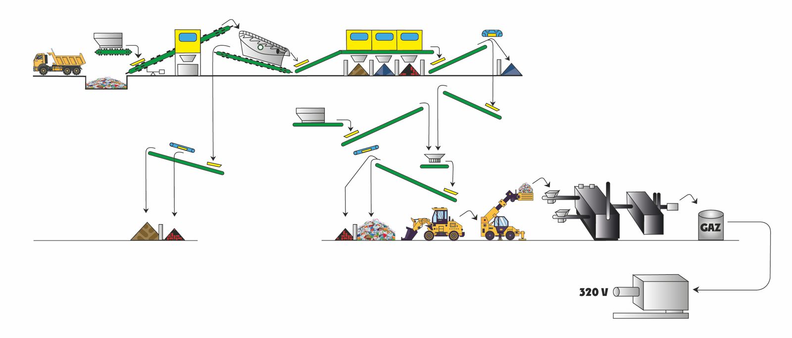 В отдалённых населённых пунктах, где отсутствует электроэнергия, или предприятиям, которым требуется электроэнергия или газ, Комплекс способен перерабатывать отходы в Синтез газ, который закачивается в резервуары (газгольдеры) где хранится и используется по надобности.